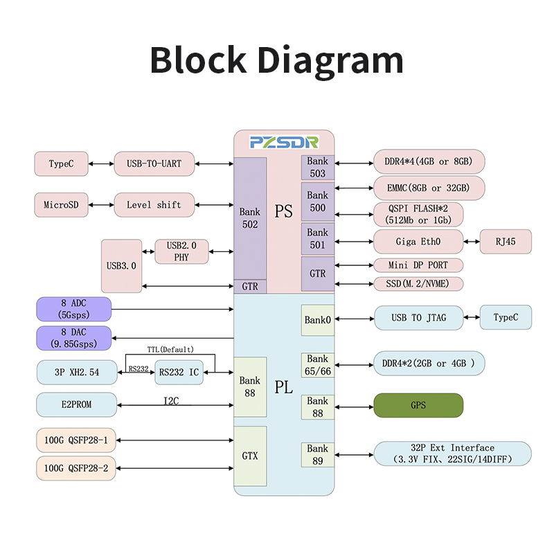 - PS Side 8GB、PL Side 4GB DDR4,32GB EMMC,1Gb QSPIFLASH