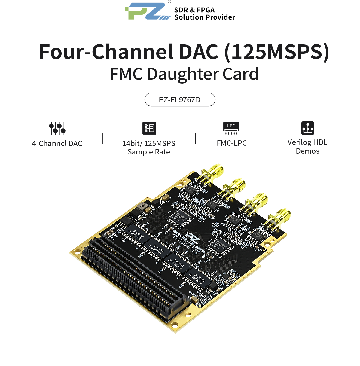 - Four-channel high-speed DAC,14bit/125MSPS high sampling rate