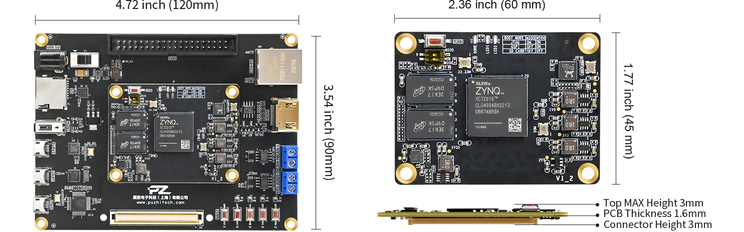 40Pin Expansion Port | 32 Single-ended/16 Differential pairs (PL Side) Reserve one 40-pin 0.1 inch Expansion Port,to Connect Puzhi Modules (AD/DA, Camera, LCD),Expansion Port including 5V power supply,3.3V power supply, 6 Ground, 32 IOs |