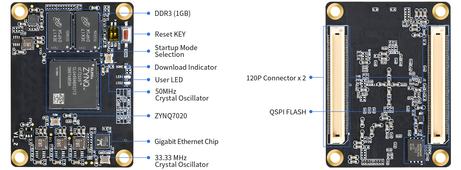 - ZYNQ core board,dual-core ARM Cortex-A9,main frequency 766Mhz