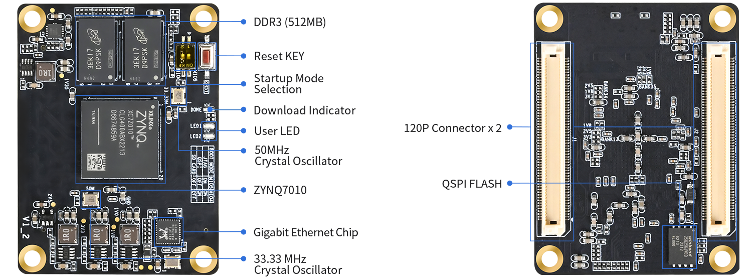 - ZYNQ core board,dual-core ARM Cortex-A9,main frequency 667Mhz