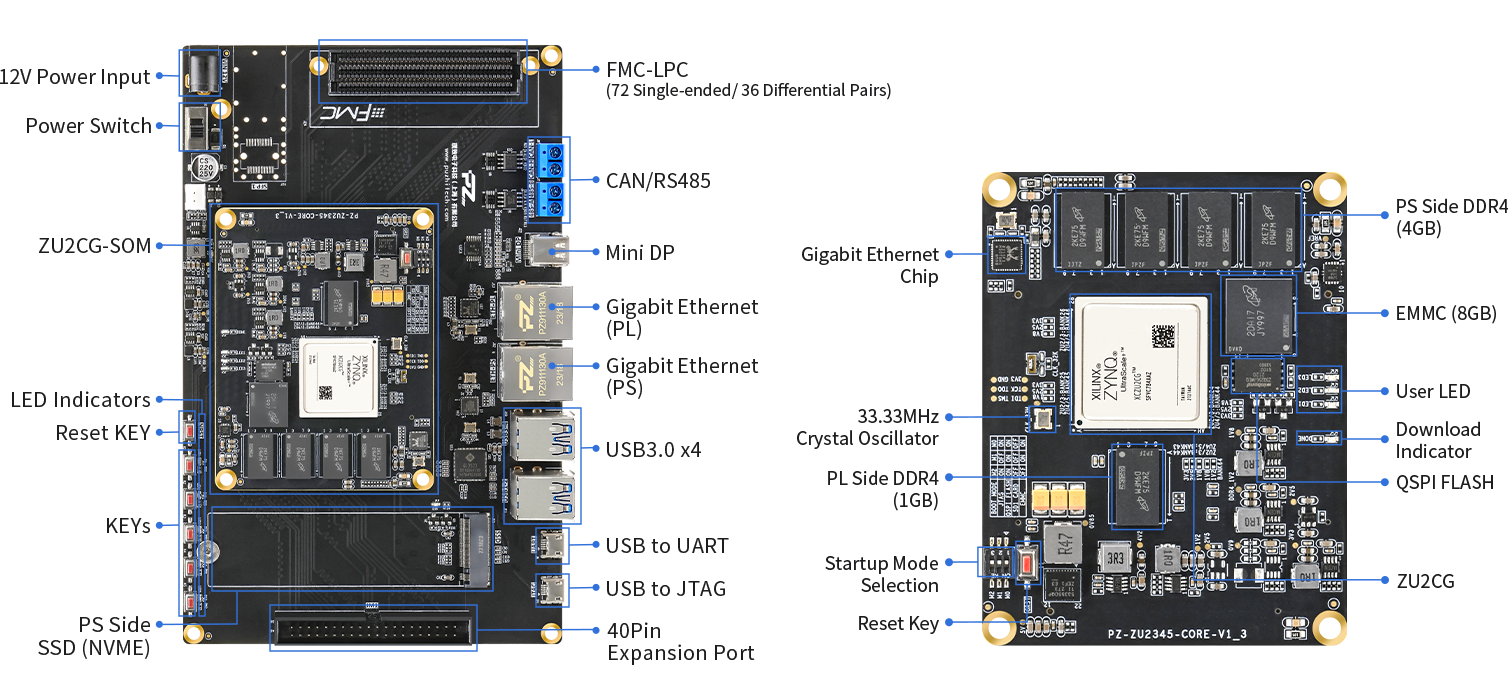 - Reserved ports UART、RS485、CAN、Gigabit Ethernet、SSD、FMC,etc