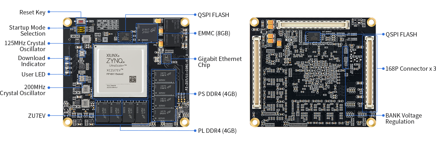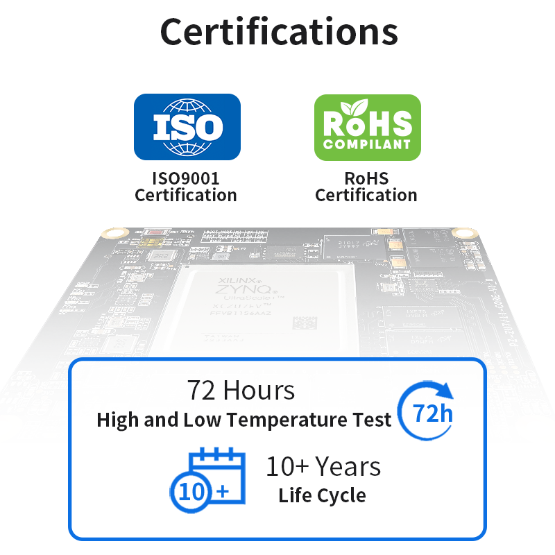 - ZYNQ UltraScale+ core board,4 x Cortex-A53,main frequency 1.3Ghz