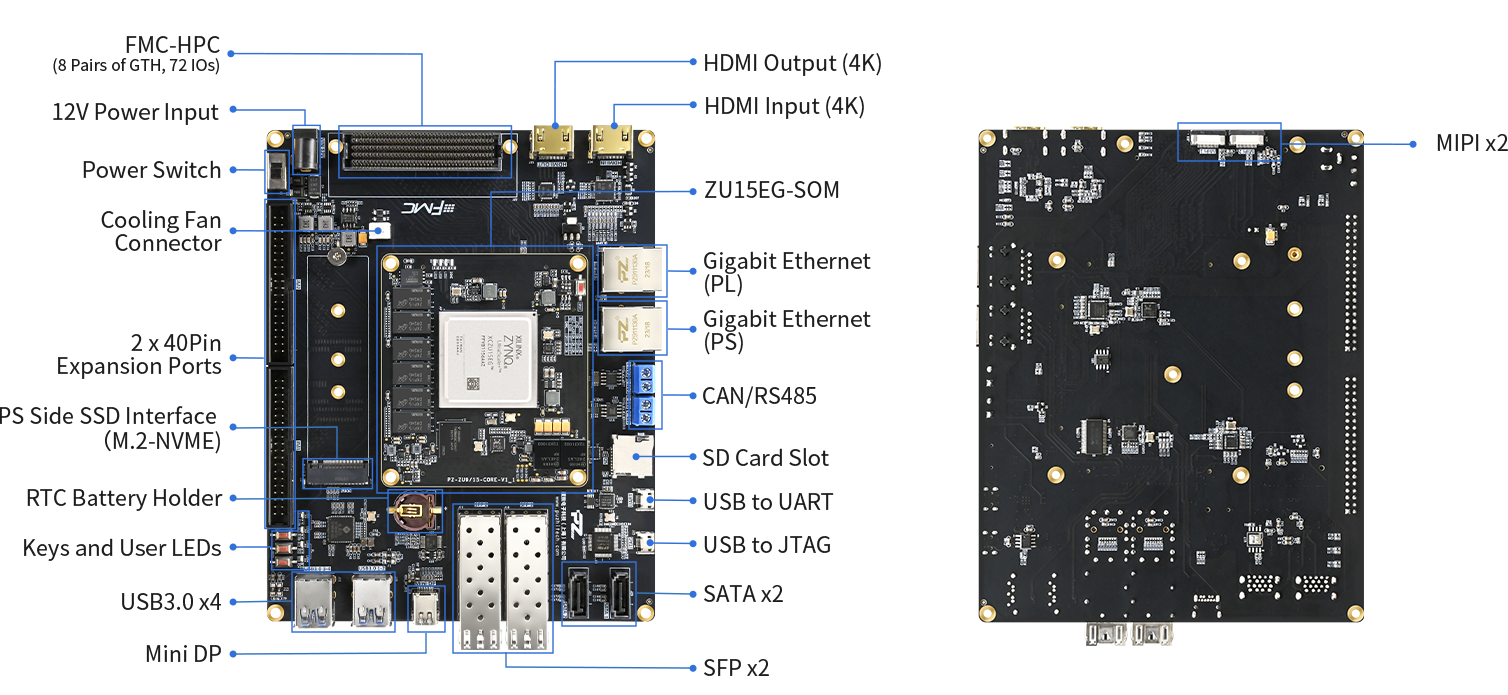 - Reserved ports Gigabit Ethernet、SSD ports、FMC、HDMI、 SFP,etc