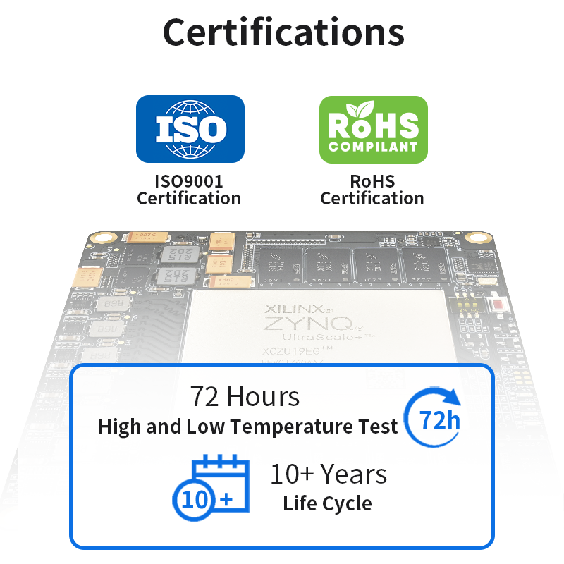 - ZYNQ UltraScale+ core board,4 x Cortex-A53,main frequency 1.333Ghz