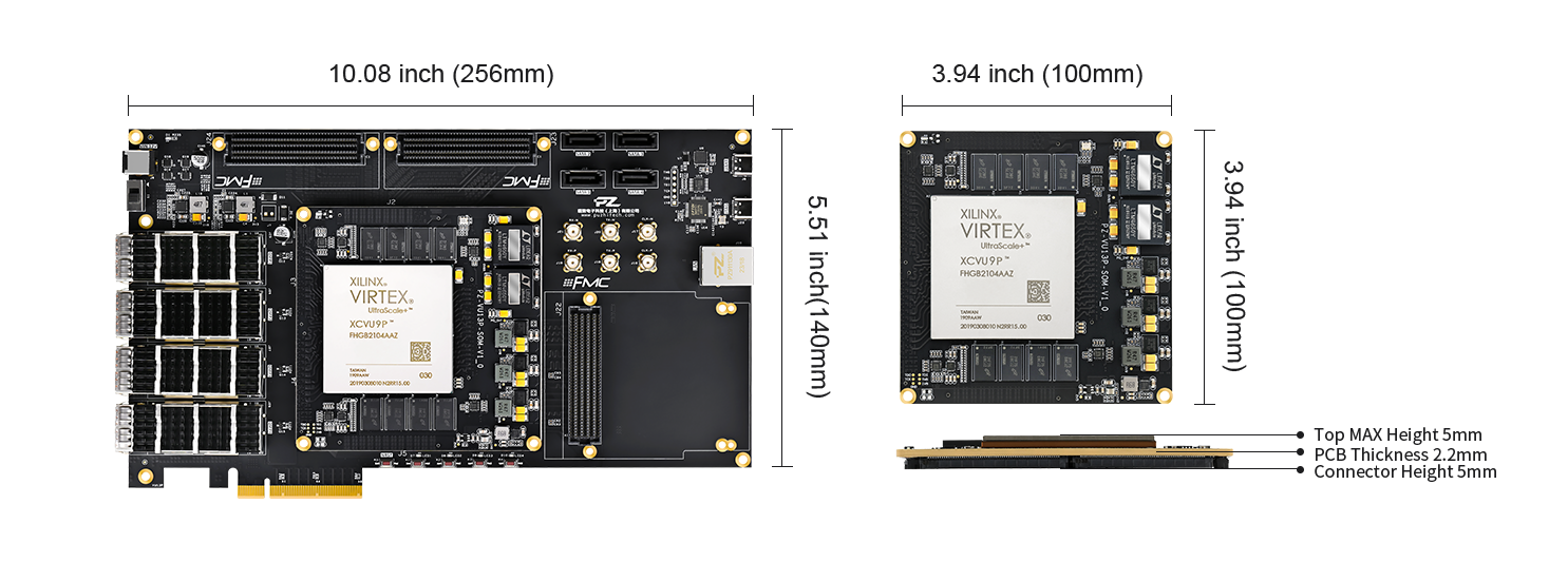 - Reserved ports Gigabit Ethernet、SMA、SATA、PCIE、FMCx3、QSFPx4,etc