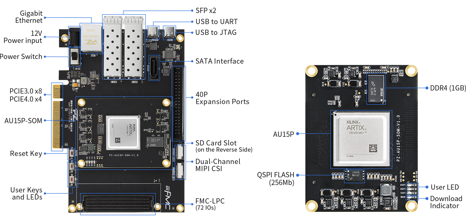 - Reserved ports Gigabit Ethernet、SATA、FMC、SFP、PCIE,etc