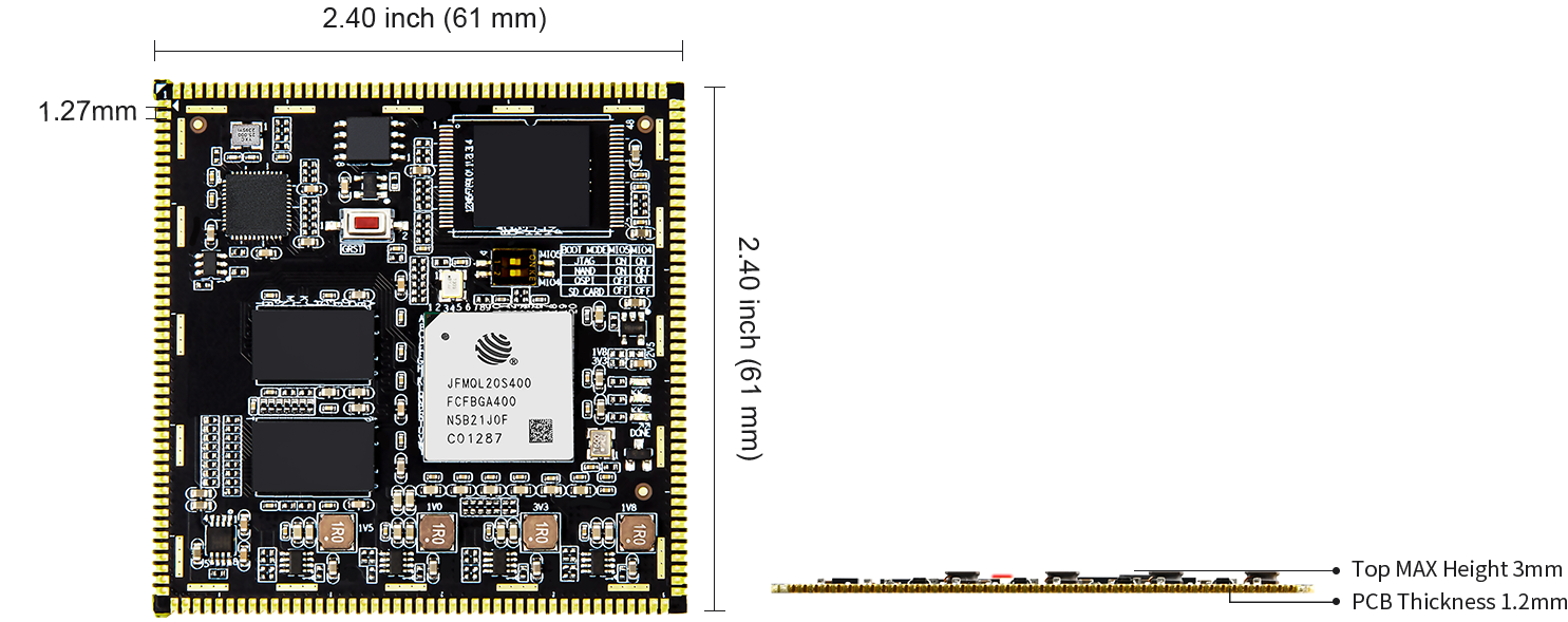 - Small size 61mm*61mm,up to 142 IO available,no components on the back