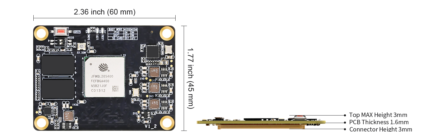 Form Factors | 2.36 inch x 1.77 inch (60mm x 45mm) 0.6mm, 120P Connectors x 2 Immersion Gold Process |