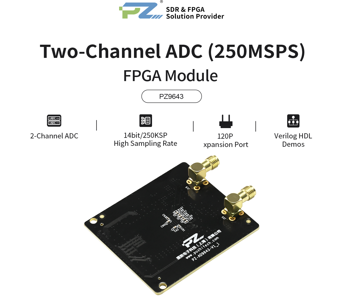 - Dual-channel high-speed ADC,14bit/250MSPS high sampling rate