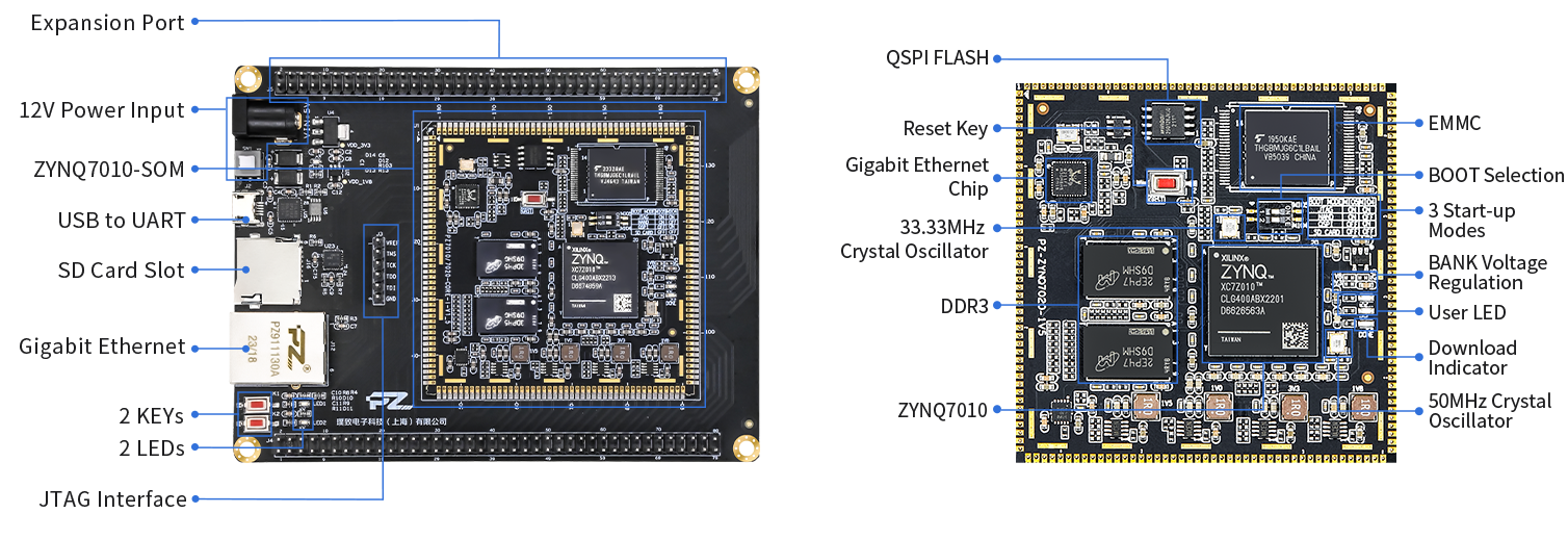 - ZYNQ core board,dual-core ARM Cortex-A9,main frequency 667Mhz