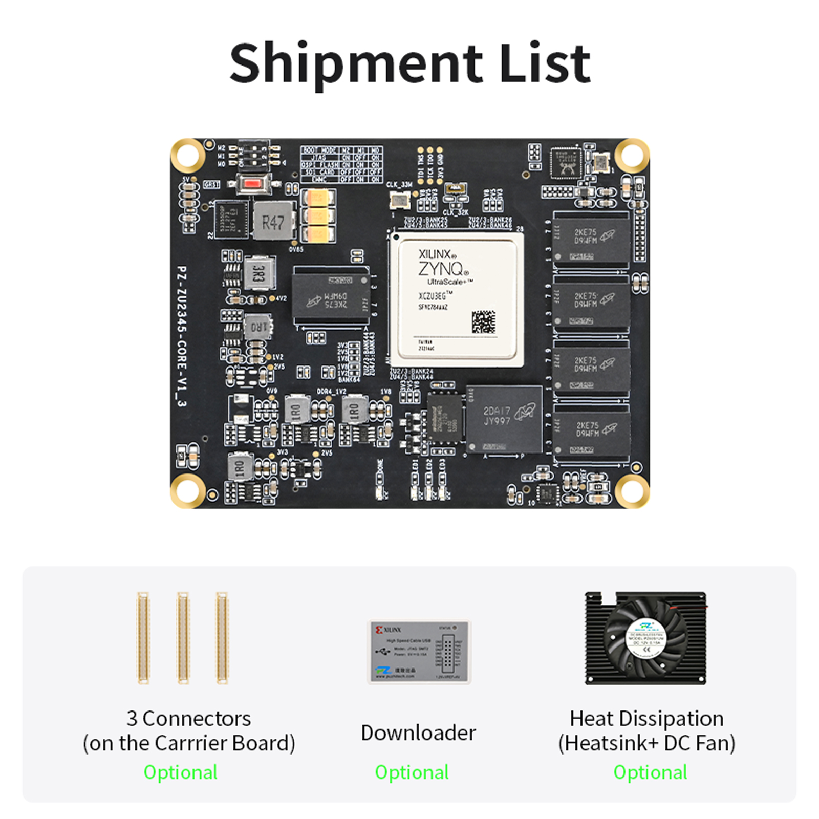- ZYNQ UltraScale+ core board,4 x Cortex-A53,main frequency 1.2Ghz