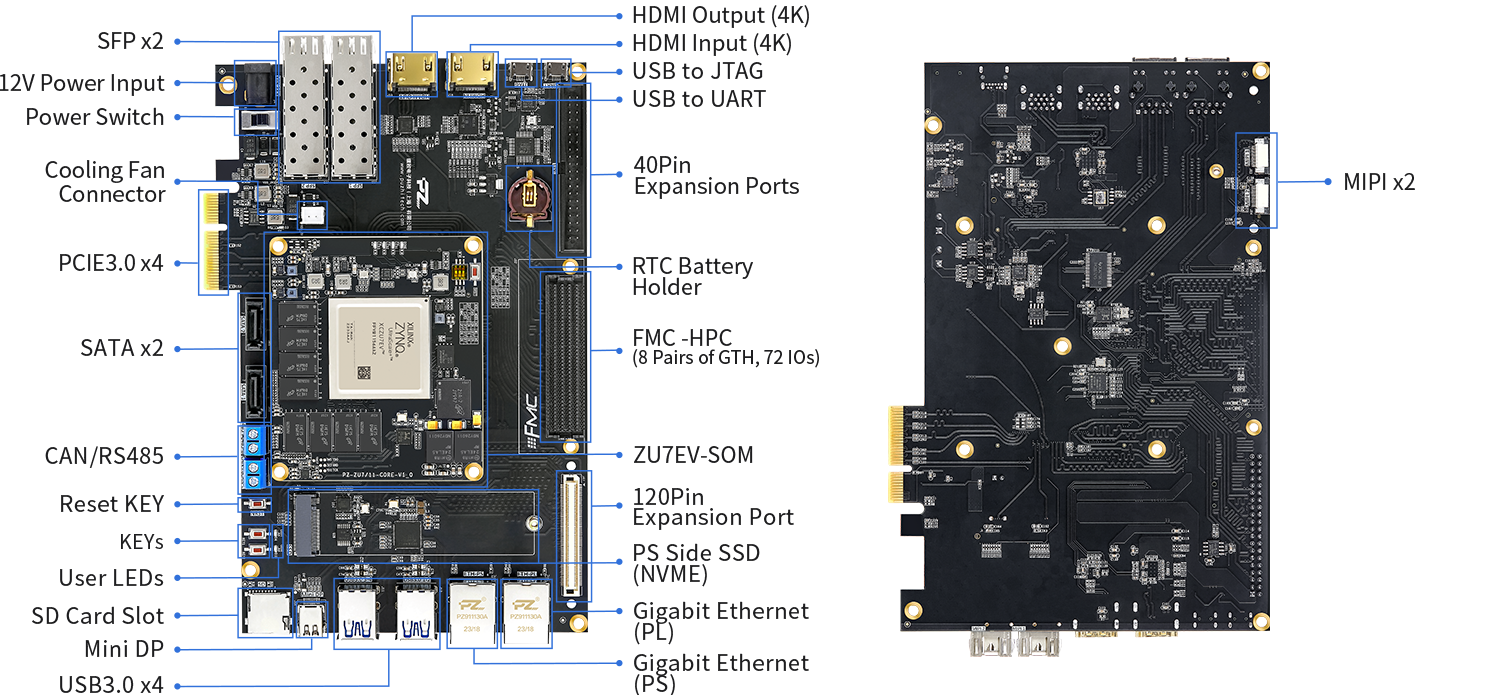- Reserved ports UART、RS485、CAN、Gigabit Ethernet、SSD、FMC,etc