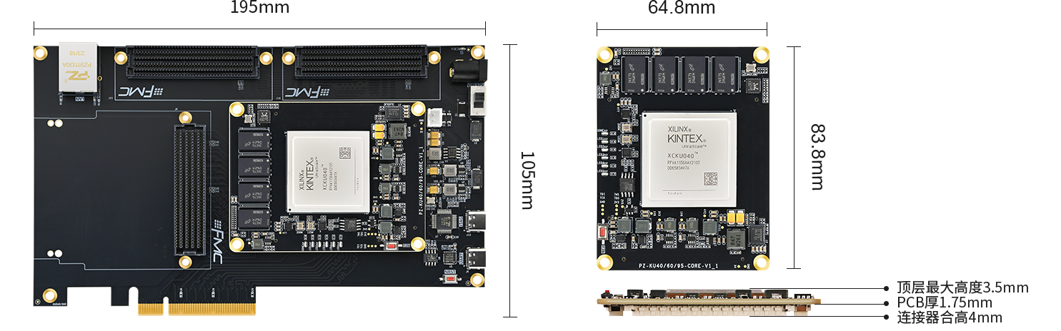 - Reserved ports Gigabit Ethernet、FMCx3、PCIE3.0x8,etc