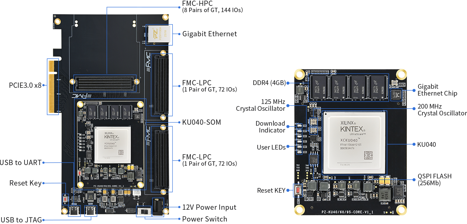 Puzhi FPGA Kintex UltraScale KU040-FHT Development Board