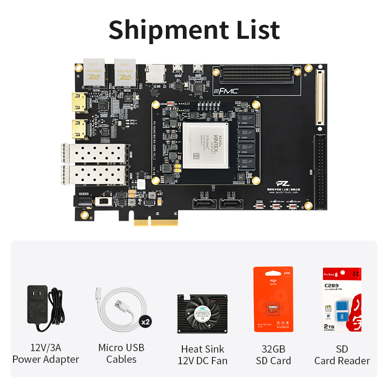 - Reserved ports Gigabit Ethernet、FMC、HDMI、PCIE、SFP,etc