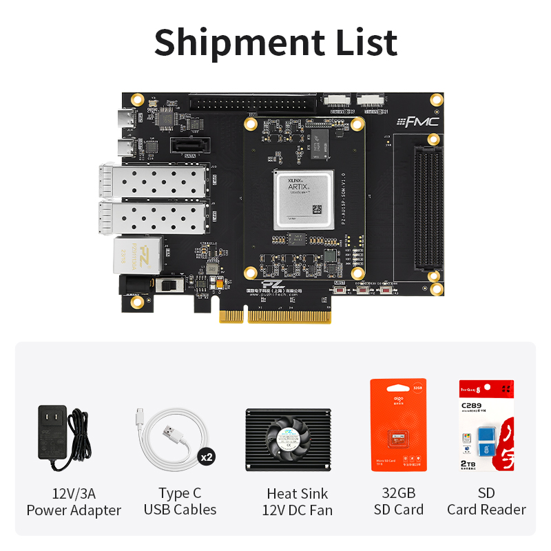 - Reserved ports Gigabit Ethernet、SATA、FMC、SFP、PCIE,etc