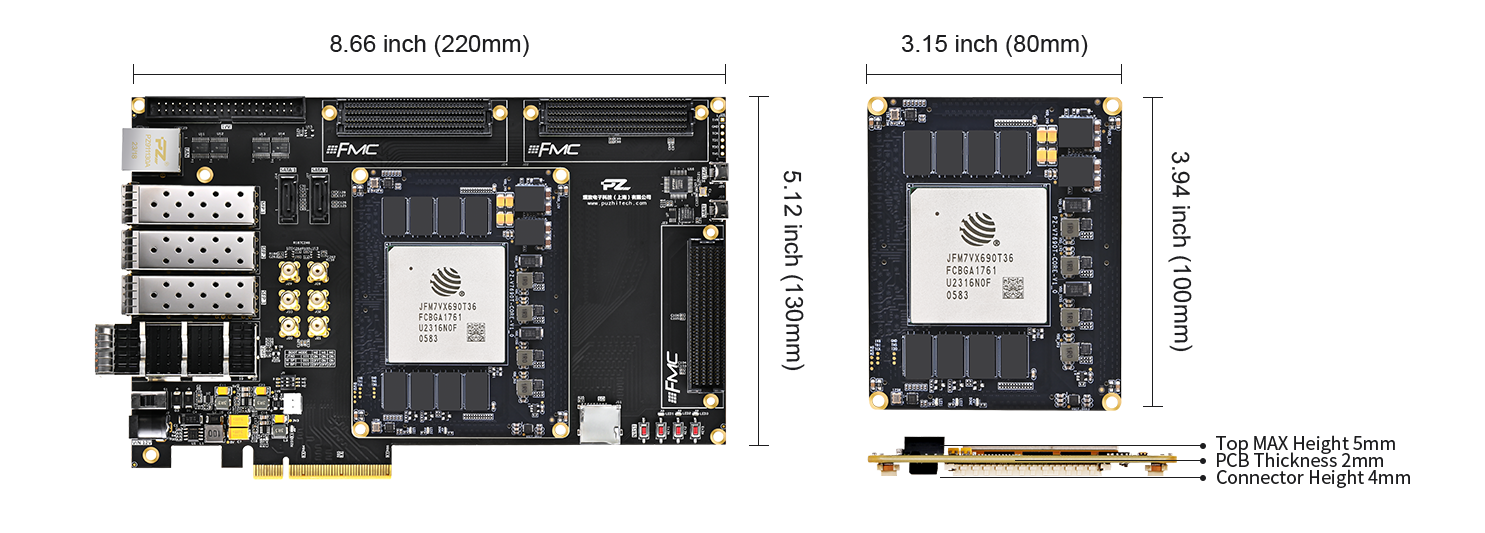 Puzhi FPGA Fudan Micro Virtex-7 V7690T Development Board